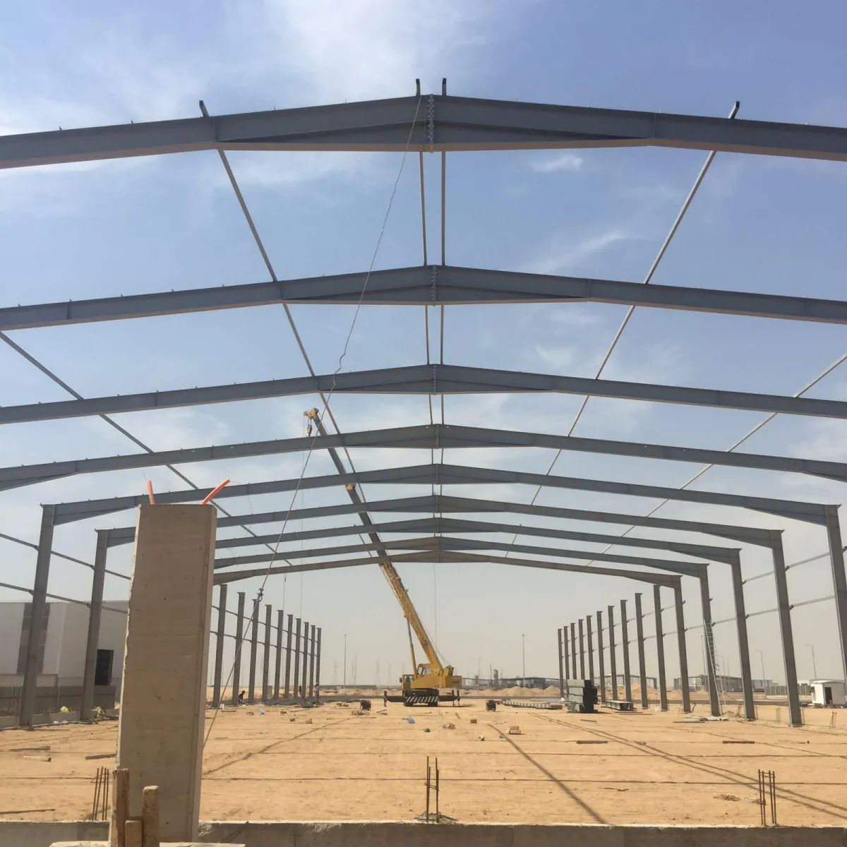 Project overview: Taha Urban Steel Buildings Factory Construction Project, factory was built with highest quality and includes an administrative building, a factory building and external yards, With all MEP works, project area is 10 thousand square meters
